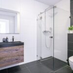- Moderne badkamer met dubbele wastafel en Grohe rainshower smartcontrol douche.