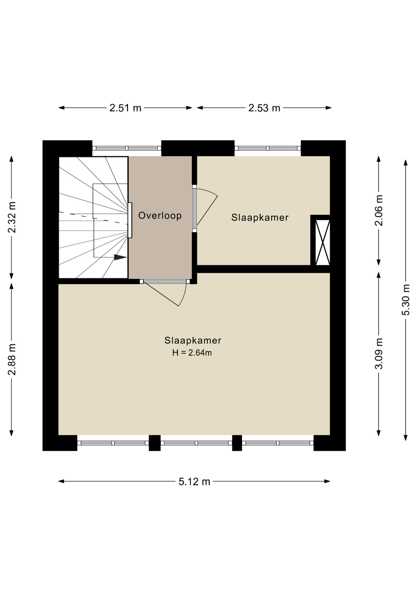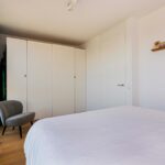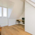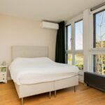 Via de open trap kom je op de tweede verdieping met nog eens twee slaapkamers. De slaapkamer aan de voorzijde is eveneens over de volledige breedte van de woning, de slaapkamer aan de achterzijde is compacter van formaat en uitstekend geschikt als werk/studeer/hobby/babykamer. Ook deze verdieping is voorzien van een eiken houten vloer.