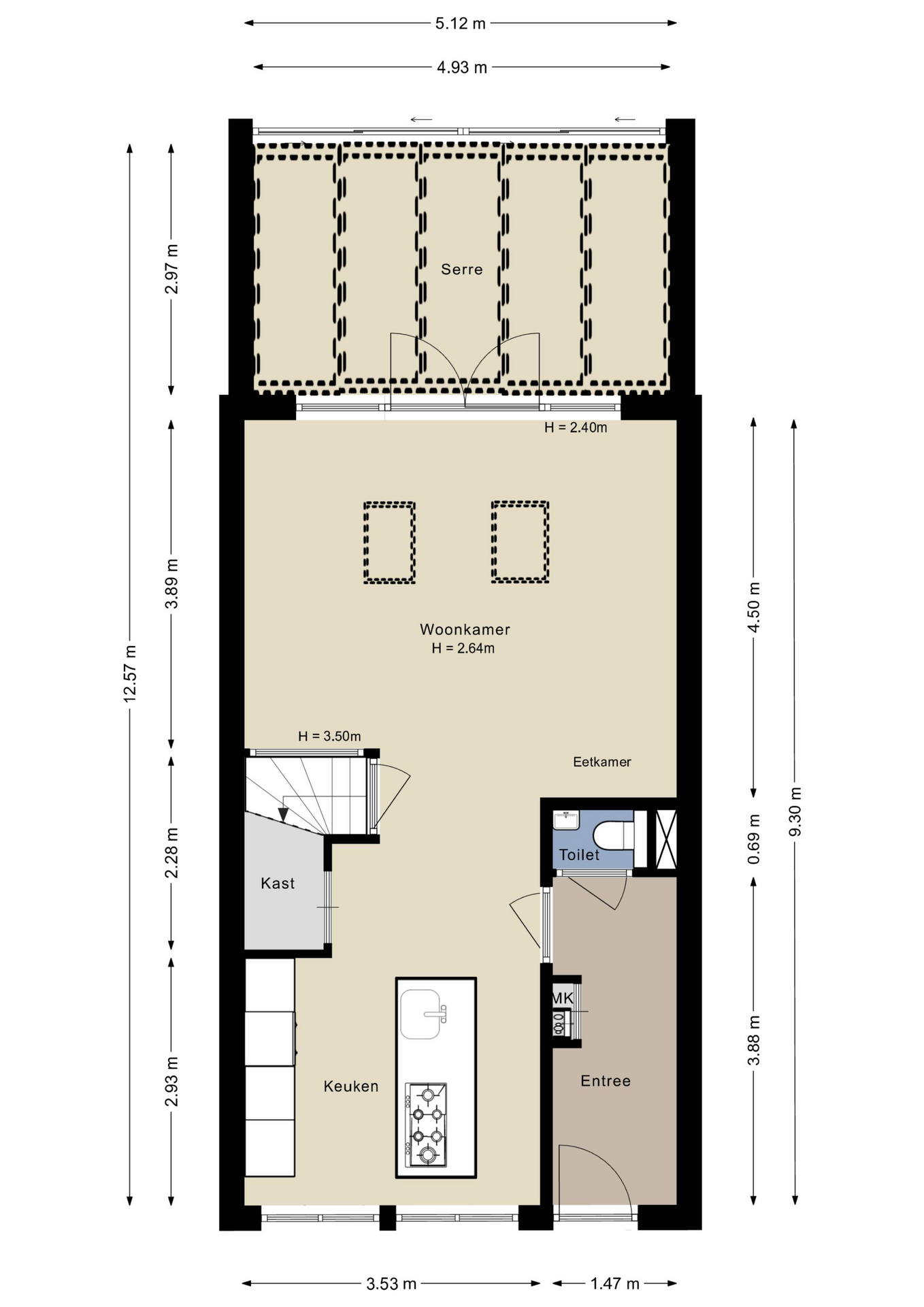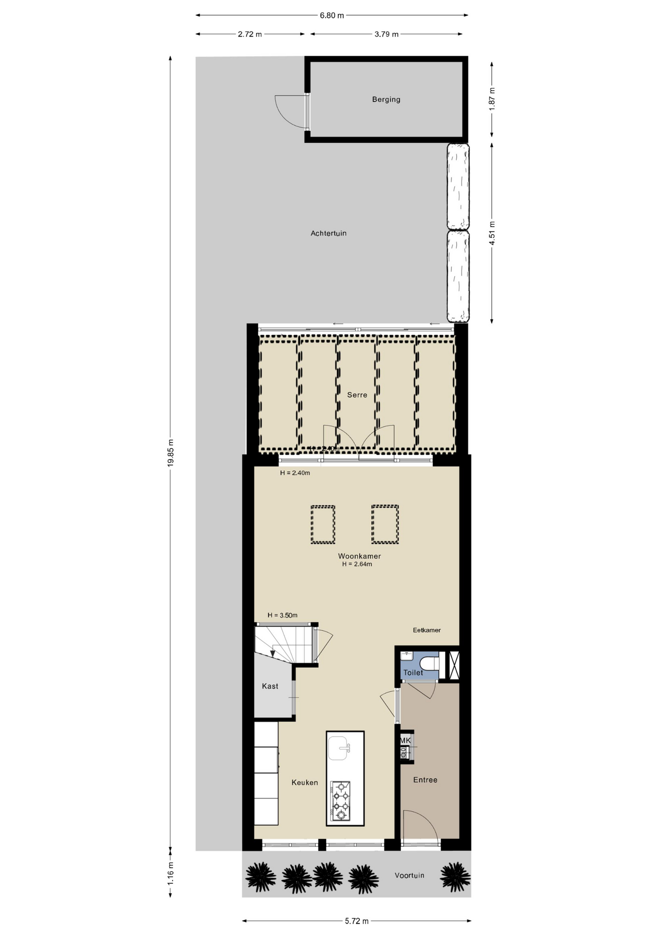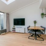 Begane grond: Via de entree kom je binnen in de hal met garderobe, meterkast, modern toiletruimte en toegang tot de lichte woonkamer en de open keuken aan de voorzijde. De keuken is voorzien van een kookeiland en hoogwaardige inbouwapparatuur en een nieuwe Quooker. Naast de keuken bevindt zich een praktische trapkast, erg handig voor dagelijkse boodschappen en voorraad. De woonkamer beschikt over een hoog plafond en prachtig lichtinval door twee grote dakramen. De openslaande deuren geven toegang tot een gezellige serre die is voorzien van glazen schuifpanelen en twee elektrische terrasheaters. Op deze woonlaag ligt een mooie eiken houten vloer en alle wanden zijn voorzien van glad stucwerk.
