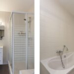 De slaapkamers liggen aan de voorzijde van het appartement. Zowel aan de linker- als rechterzijde vind je een slaapkamer. De grootste slaapkamer heeft een oppervlakte van ruim 13 m² en biedt ruimte aan een groot tweepersoonsbed en brede wandkast. Ook de tweede slaapkamer is ruim en uitstekend geschikt als kinder- of werkkamer. Beide slaapkamers zijn voorzien van de stijlvolle laminaatvloer en het is aangenaam licht in de kamers. De badkamer is volledig betegeld en bijzonder comfortabel. Hier vind je een heerlijk ligbad, douchecabine en wastafelmeubel. In de aparte wasruimte vind je de witgoedaansluitingen en hier kun je bovendien veel spullen opslaan.