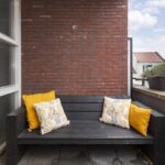 Het heerlijke balkon is te bereiken via een deur in de woonkamer. Het balkon is ruim en betegeld. Je kunt hier fantastisch zitten en volop genieten van de zon en het buitenleven. Het balkon is overdekt, waardoor je zelfs op regenachtige dagen lekker buiten kunt zitten.