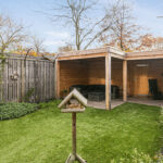 De achtertuin (2024) is opnieuw aangelegd met moderne bestrating, kunstgras en een fraaie overkapping achterin de tuin – perfect om het hele jaar door buiten te genieten. Dankzij de zuidoostelijke ligging kan je hier lekker genieten van de zon.