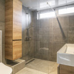 De badkamer is luxe uitgevoerd met inloopdouche (regendouche en handdouche), breed wastafelmeubel met dubbele kraan, hangend closet, designradiator en een verlaagd plafond met ledspots. Fijn is het raam welke zorgt voor veel lichtinval en natuurlijke ventilatie.