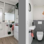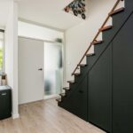 De hal is ruim van afmeting en voorzien van een laminaatvloer, glad gestucte wanden -en plafond, meterkast met nieuwe en uitgebreide groepenkast, moderne toiletruimte met hangend closet en fonteintje, mooie en praktische trapkast en trapopgang. De hal staat in semi-open verbinding met zowel de keuken als de woonkamer, wat een extra ruimtelijk gevoel geeft.