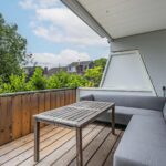 Het ruime dakterras van circa 13m² heeft vrij uitzicht op het park en door de zonnige ligging op het zuidwesten kun je hier uitermate goed vertoeven. Het terras is fraai afgewerkt met Douglas houten vlonderdelen en voorzien van een elektrische zonwering.