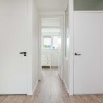 Entree tot het tochtportaal met garderobe en deur naar de aangrenzende hal.