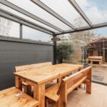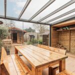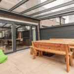 - De serre/tuinkamer op de begane grond is uitgevoerd in aluminium met gelaagd glas, schuifdeuren, elektrische zonwering en inbouwverlichting;