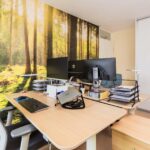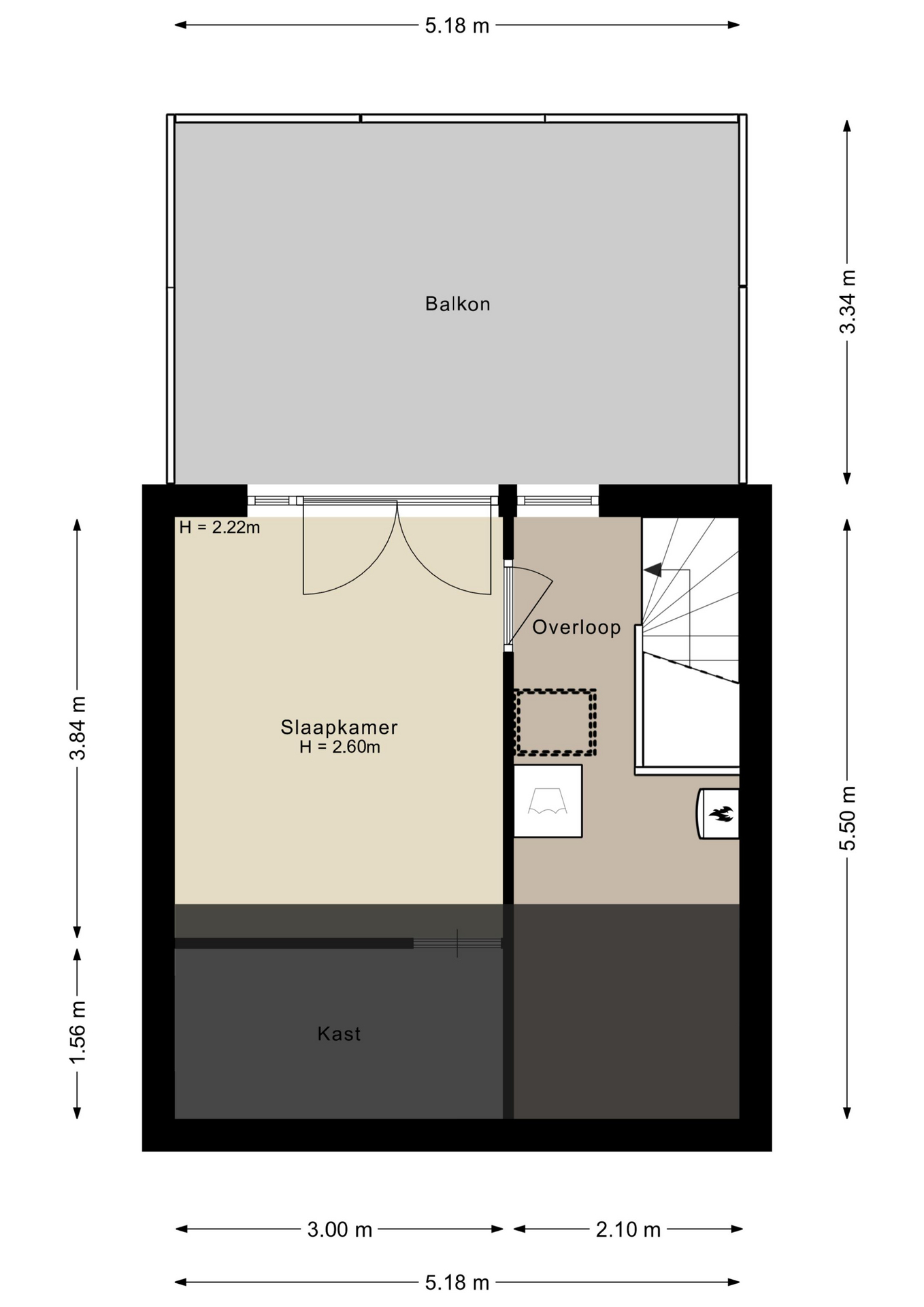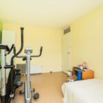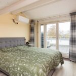 De zolderkamer is ruim van afmeting en enorm licht door de brede glazen achterpui met openslaande deuren naar het dakterras. De slaapkamer is voorzien van een PVC-vloer, glad gestucte wanden en eigen airco.