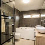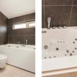 De badkamer is in 2023 geheel vernieuwd en veranderd in een heerlijke en luxe wellnessruimte. De hoogwaardige afwerking bestaat uit de meest uitgebreide jacuzzi, grote inloopdouche met thermostaatkraan, badkamermeubel met twee waskommen, spiegelkast, hangend closet, designradiator, automatische mechanische ventilatie en kunststof raampartij.