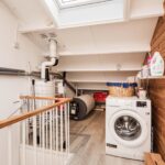 Via de vaste trap is de voorzolder toegankelijk, waar je naast de CV-opstelling tevens de zonnecollectoren en zonneboiler, de wasmachine- en drogeraansluiting, een Velux-dakraam (met elektrisch sunscreen en hor) en een groot kunststof raam met zicht op het dakterras aantreft.
