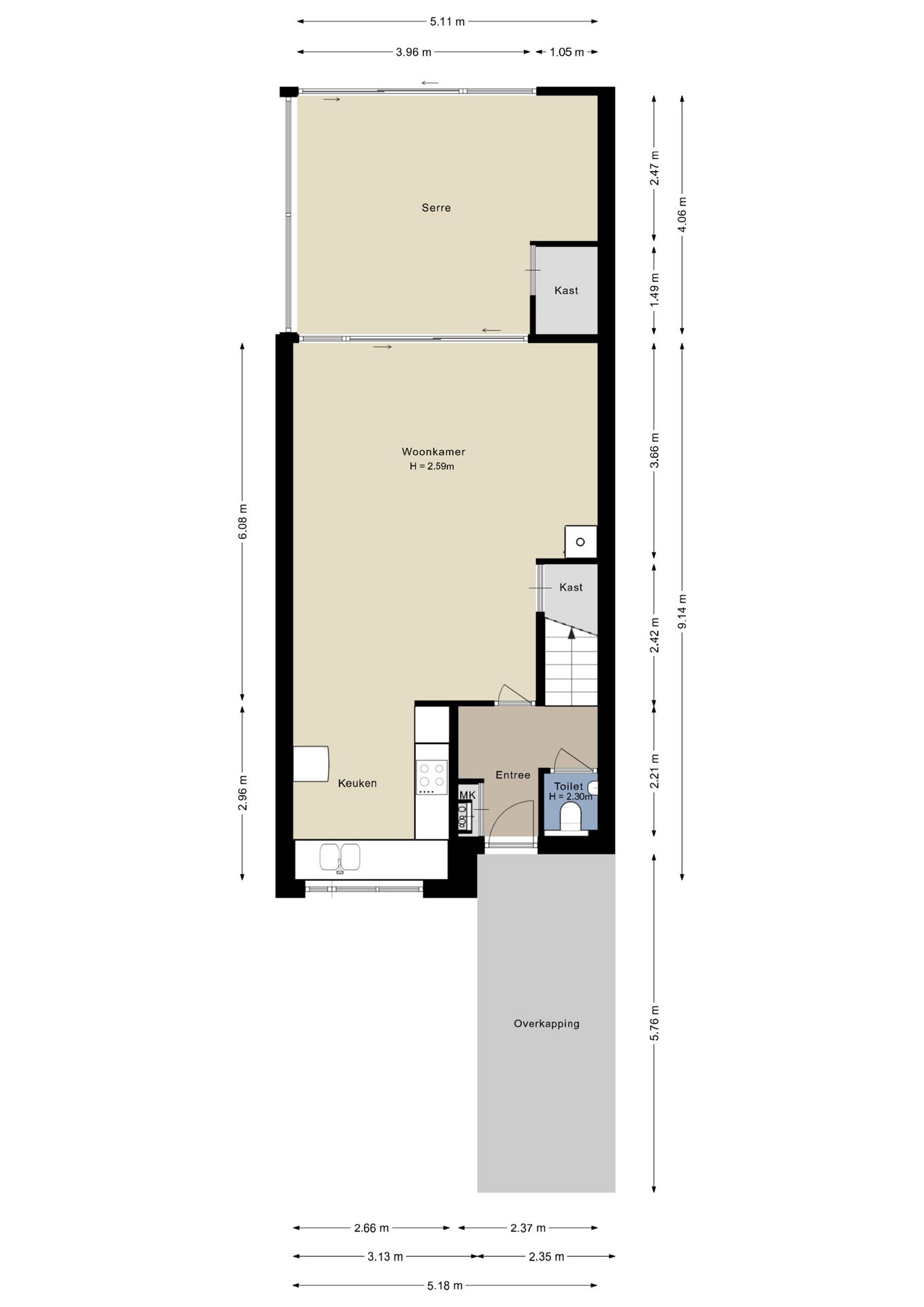 - Het woonoppervlakte bedraagt ruim 112m2, serre/tuinkamer circa 20m2, dakterras circa 17m2;