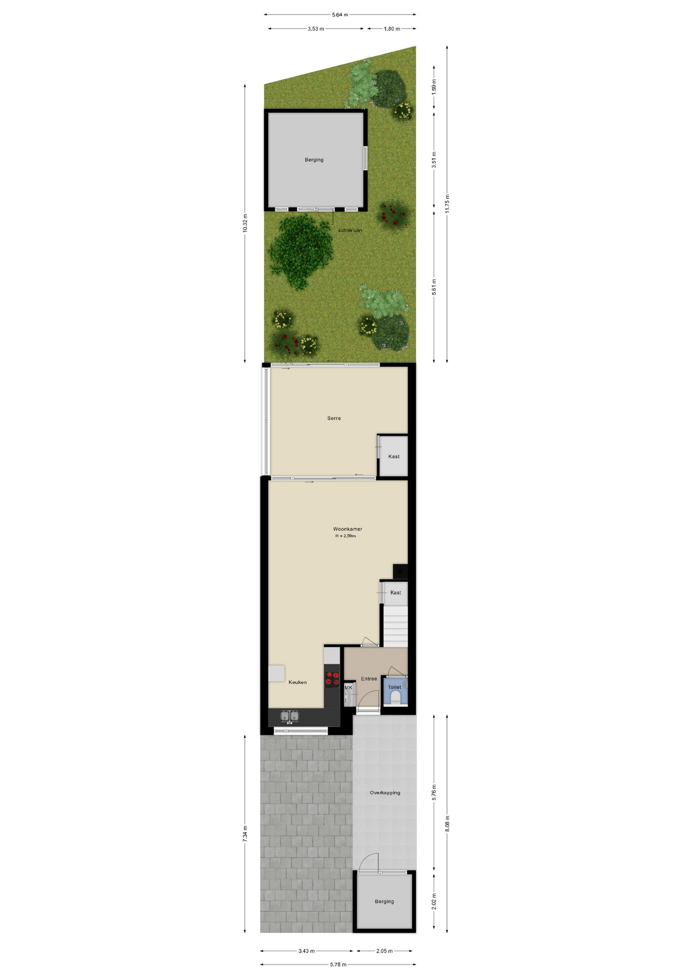 - Riant perceel eigen grond van 182m2;