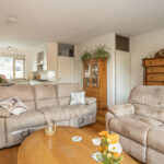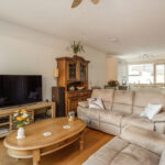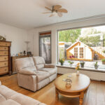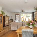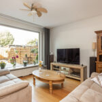 De woonkamer is ruim van afmeting en heerlijk licht door de grote raampartij en tuindeur aan de achterzijde. De living is voorzien van eikenhouten vloerdelen, deels spuitwerkwanden en trapkast.