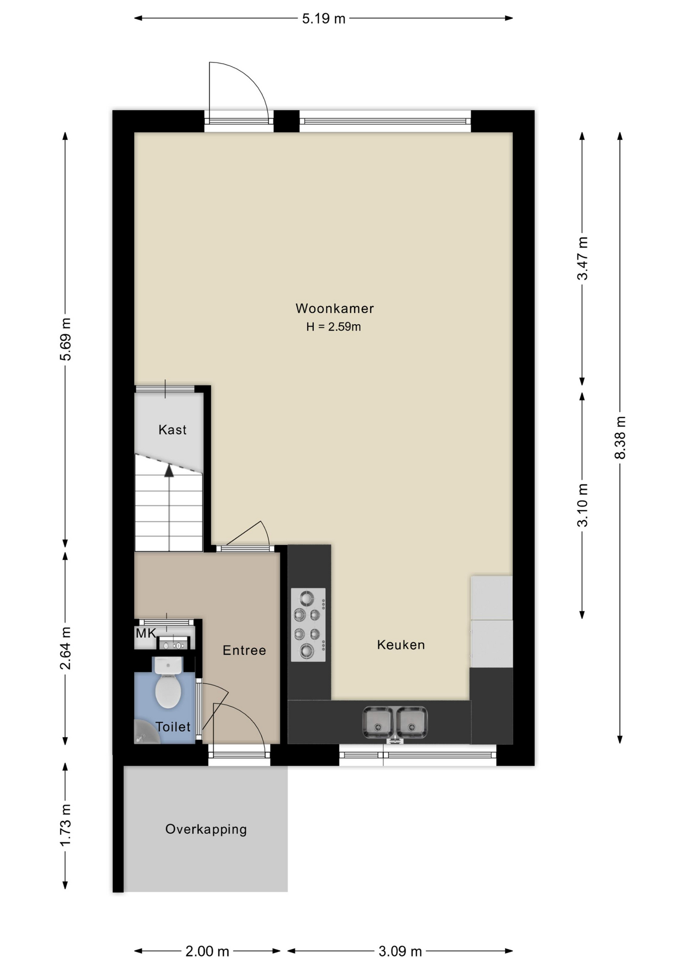 - Alle kozijnen en deuren zijn uitgevoerd met HR++ glas;