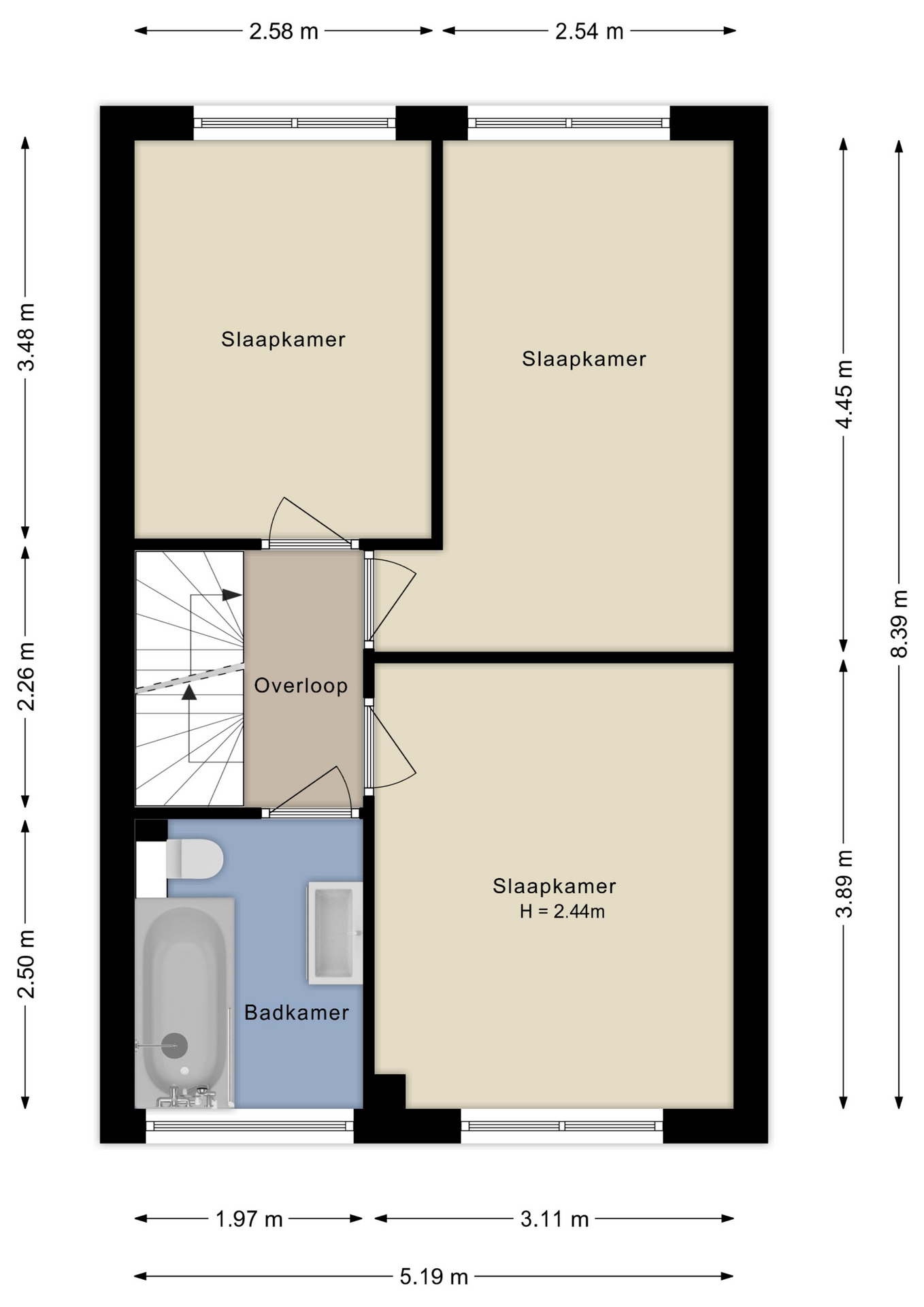 De 1e verdieping beschikt over drie ruime slaapkamers, die alle zijn voorzien van een vinylvloer, behangwanden en houten kozijnen met HR++ beglazing.