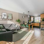 De woonkamer is ruim van afmeting en heerlijk licht door de grote raampartij en tuindeur aan de achterzijde. De living is voorzien van laminaatvloer, glad gestucte wanden en trapkast.