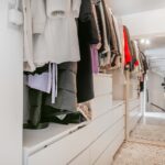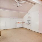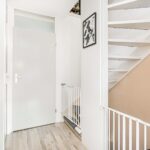 Overloop met laminaatvloer, spuitwerkwanden, inloopkast en trapopgang naar de 2e verdieping.
