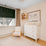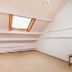 De volwaardige derde slaapkamer is zeer ruim van afmeting én heerlijk licht het grote Velux-dakraam. De kamer is keurig afgewerkt met vloerbedekking en structuurverfwanden en beschikt over een wastafel en veel bergruimte achter het knieschot.