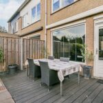 De grote en vrij gelegen achtertuin is fraai aangelegd met een kunststof vlonderterras, moderne sierbestrating en robuuste schuttingen. Door de gunstige ligging op het zuidoosten geniet je hier de gehele dag van de zon!