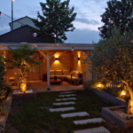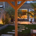 Achterin de tuin staat een ruime overkapping waaronder het heerlijk vertoeven is. De gezellige overkapping is voorzien van twee lichtkoepels en een achterdeur. Fijn is dat er elektra en water aanwezig is. Mocht je liever in de zon zitten, dan biedt de gunstige zuidwestelijke ligging uitkomst. Hierdoor geniet je van het einde van de ochtend tot laat in de avond van dit heerlijke plekje!