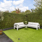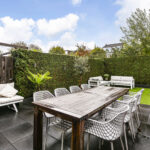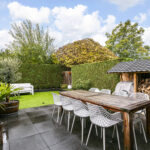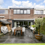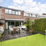De voortuin biedt parkeergelegenheid op eigen terrein en toegang tot de garage. De zonnige achtertuin (ca. 9 meter diep) is verzorgd aangelegd met sierbestrating en kunstgras. Door de gunstige zuidoostelijke ligging geniet je hier de hele dag van de zon en volop privacy.