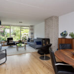 Binnen geniet je van een lichte woonkamer met houten vloer en grote raampartijen die zorgen voor veel daglicht en een sfeervolle houthaard. De open keuken is modern en compleet uitgerust met een natuurstenen werkblad, inductiekookplaat,…
