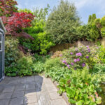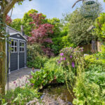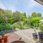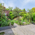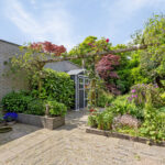 De achtertuin is een heerlijke verrassing: ruim 12 meter diep, fraai aangelegd met een vijver, veel groen en een gunstige ligging op het noordwesten. Door de diepte van de tuin heb je hier de hele dag zon en op de warme zomerdagen zijn er voldoende schaduwplekjes te vinden.