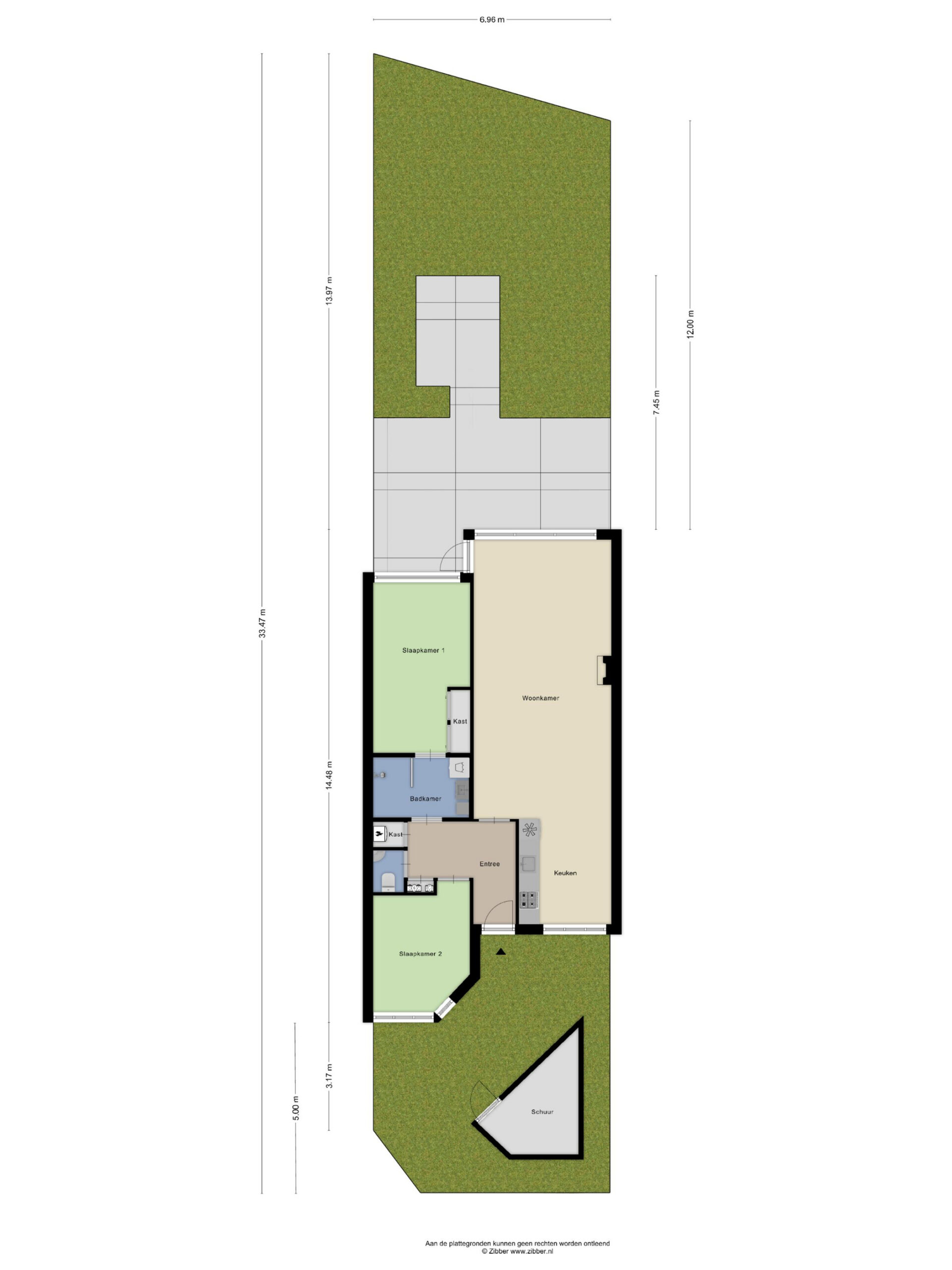 Aan de voorzijde van de woning is een berging aanwezig, een eigen oprit en een carport.