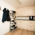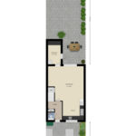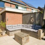 Aan de achterzijde van de woning vind je de woonkamer met een directe doorgang naar de praktische berging. Deze bergruimte geeft de toegang tot de ruime, zonnige achtertuin. De tuin, gelegen op het zuiden, beschikt over een achterom en is een heerlijke plek om te genieten van het buitenleven.