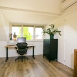 Met een vaste trap kom je op de overloop met aansluitingen voor het witgoed en de CV-ketel. Ruime vierde slaapkamer vergroot middels een dakkapel. Hier is een airco opgehangen.