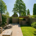 Doordat er een groenstrook achter de woning ligt is er veel privacy in de tuin. De achterom biedt doorgang naar de groene wandelpaden langs de woonwijk. De voortuin is volledig gestraat en biedt ruimte voor het parkeren van een auto op eigen terrein.
