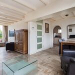 Binnen tref je een brede hal met trapopgang en vernieuwde meterkast. De ruime woonkamer is voorzien van vloerverwarming, een open haard en een schuifpui naar het terras, een fijne, lichte leefruimte.