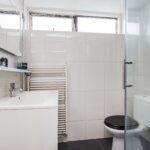 De badkamer (2008) beschikt over een douche, wastafelmeubel en toilet.