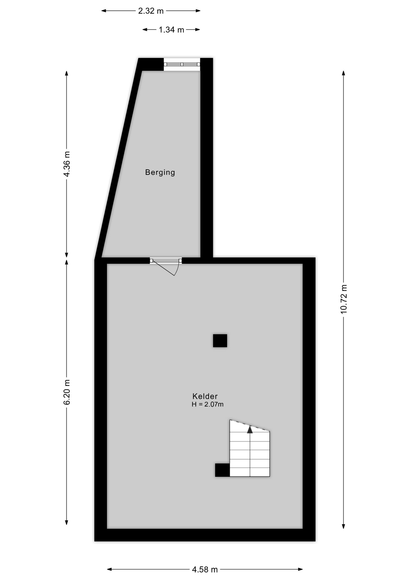 Onder de woning bevindt zich een ruime kelder met stahoogte, bereikbaar via een vaste trap. Deze is ingedeeld in een grote multifunctionele ruimte met achterin extra bergruimte. De huidige eigenaar gaf hier zelfs muziekles, een plek met tal van mogelijkheden.