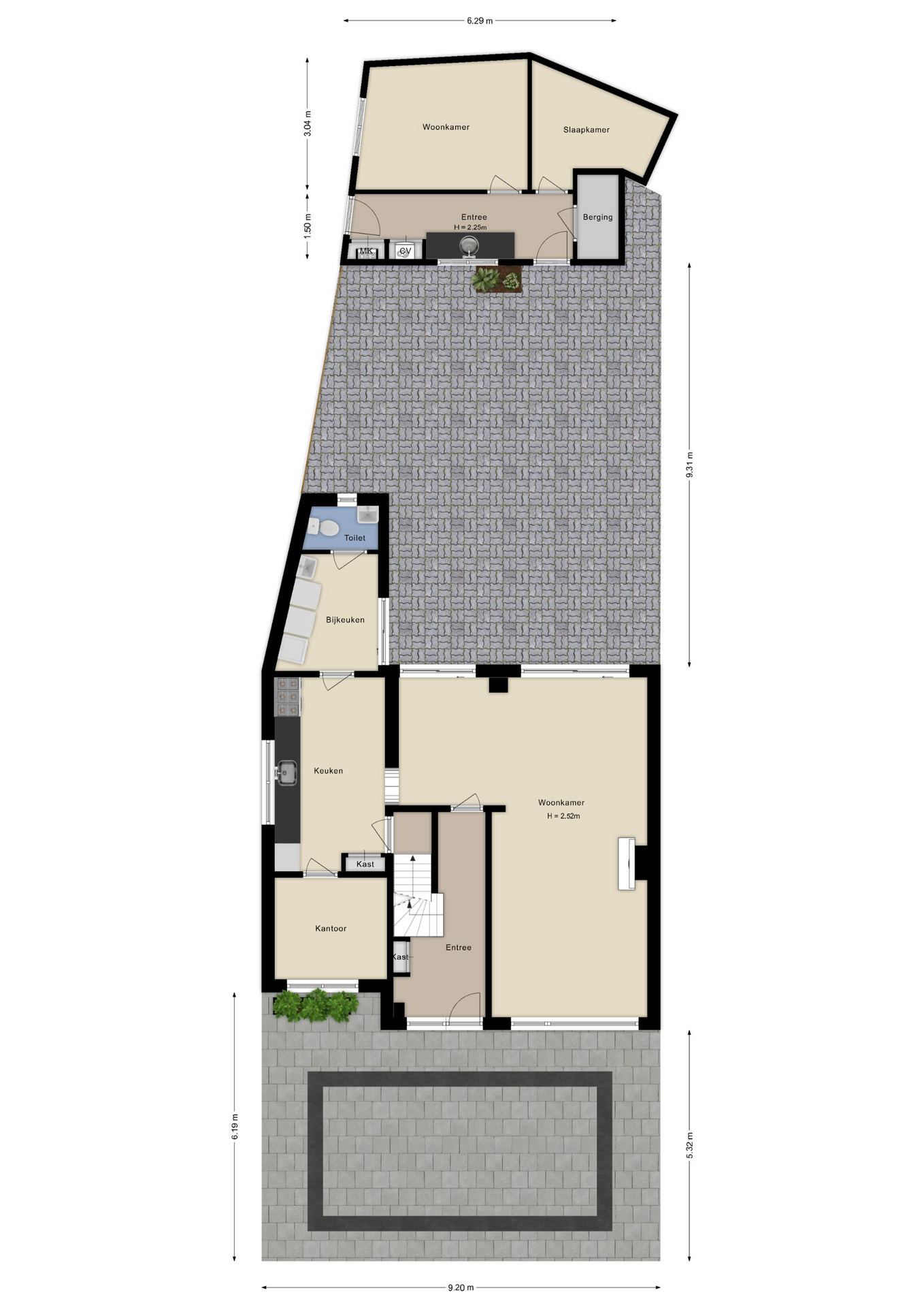 Via de voortuin bereik je de entree. Aan de zijkant bevindt zich parkeergelegenheid op eigen terrein (open te houden in verband met recht van overpad).