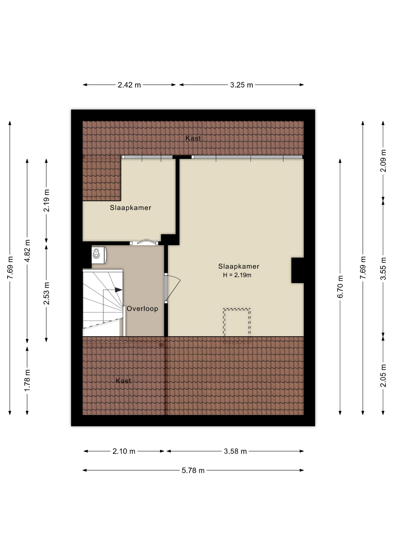 Hier bevinden zich de vierde en vijfde kamer, vergroot door een dakkapel aan de achterzijde. Tevens vind je hier de cv-ruimte met een Nefit Trendline combiketel (bouwjaar 2020) en volop bergruimte.