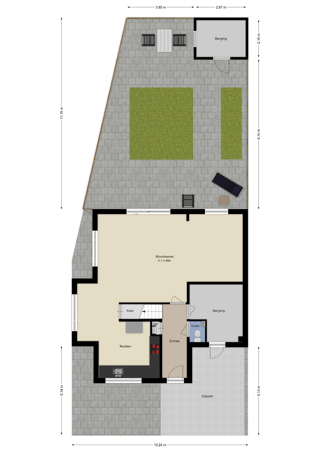 - Beschikt over een praktische carport, ideaal voor je auto en extra bergruimte.