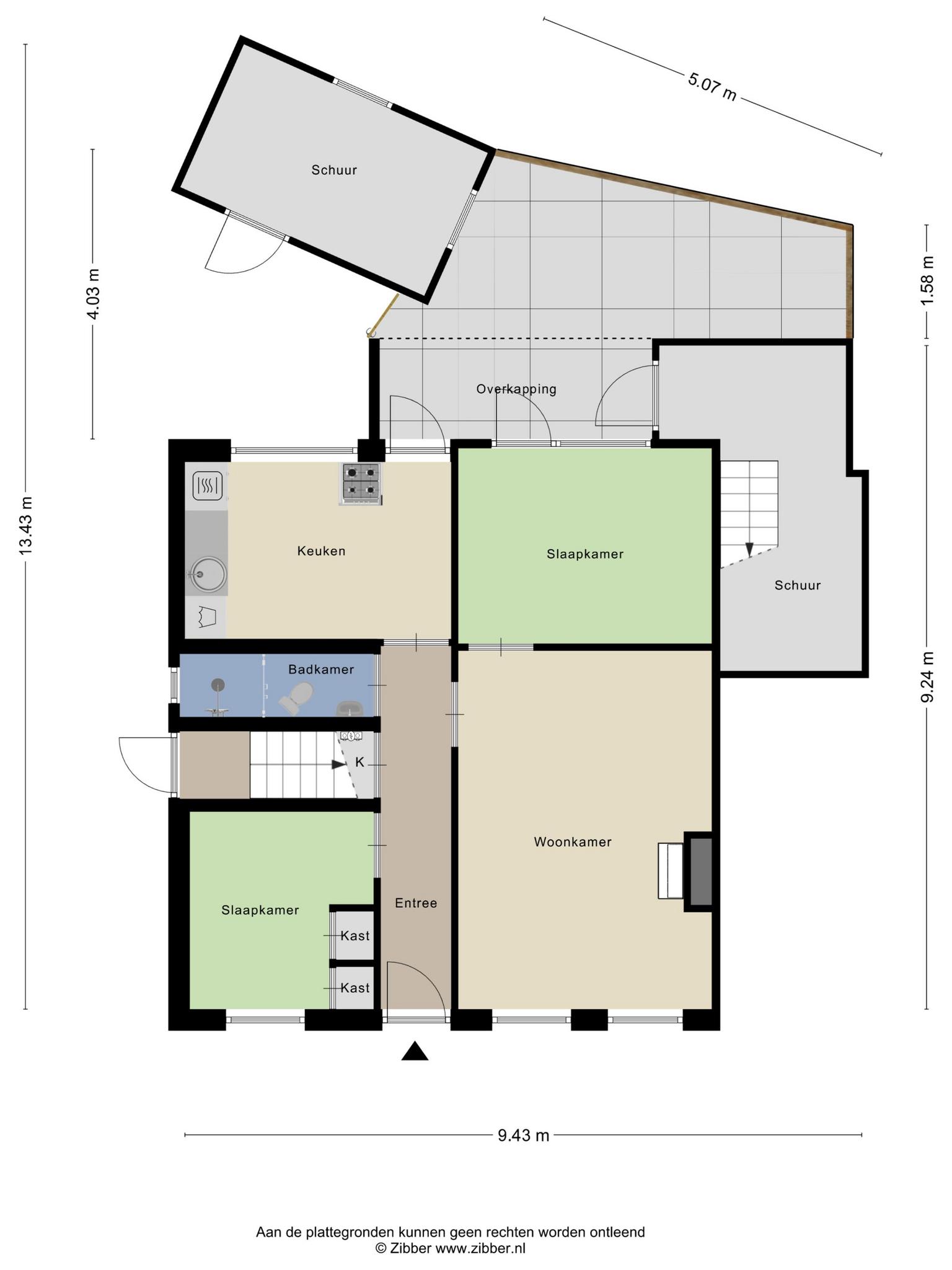 Bij binnenkomst op de begane grond vind je een ruime entree die toegang biedt tot de woonkamer, keuken, twee slaapkamers en een toilet. De keuken is functioneel en biedt voldoende opbergruimte, ideaal voor de dagelijkse kookbehoeften. De badkamer is verzorgd ingericht en voorzien van een douche, toilet en wastafel. Aan de achterzijde bevindt zich de achtertuin op het oosten met royale stenen berging.