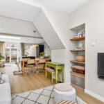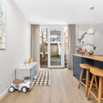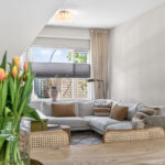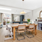 Bij binnenkomst valt direct de royale en lichte woonkamer op, die naadloos overgaat in de uitgebouwde woonkeuken. Dankzij de uitbouw en de grote raampartijen is er een prachtige lichtinval en een ruimtelijk gevoel. De moderne keuken (2022) is voorzien van een kookeiland en diverse inbouwapparatuur – de ideale plek om te koken en samen te zijn, lekker dineren of borrelen aan een grote eettafel. De woonkamer nodigt uit om samen op de bank voor de tv te ploffen en er is meer dan genoeg ruimte voor kinderen om heerlijk te spelen. De gehele begane grond is vernieuwd en voorzien van een betonnen vloer met vloerverwarming, wat zorgt voor optimaal comfort.