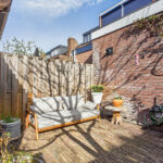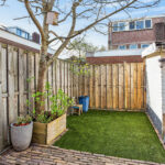 De achtertuin is een heerlijke plek om te ontspannen, met voldoende ruimte voor meerdere zitplekken en groen. De tuin beschikt over een praktische berging en een achterom – ideaal voor fietsen en extra gemak.