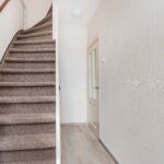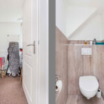 De ruime en lichte overloop is voorzien van vloerbedekking, paneeldeuren, bergruimte, luik met vlizotrap naar de bergvliering en een moderne toiletruimte met hangend closet en fonteintje.