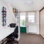 De 1e verdieping heeft drie slaapkamers voorzien van dakkapellen waarvan er thans één in gebruik is als werkkamer met vaste schuifkastenwand. De hoofdslaapkamer ligt aan de achterzijde van de woning en is voorzien van airconditioning.
