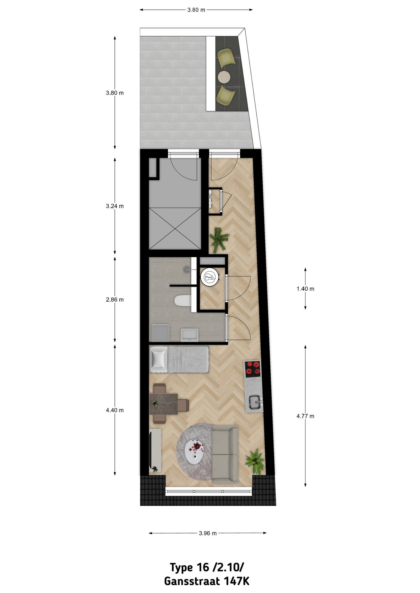 De appartementen hebben een woonoppervlakte van circa 30 m² en zijn compact, licht en slim ingedeeld. Dankzij de doordachte plattegronden wordt elke vierkante meter optimaal benut — ideaal voor alleenstaanden of een starter die graag midden in de stad wonen. De appartementen zijn niet geschikt voor gezinnen, maar vooral voor 1 persoonshuishoudens.