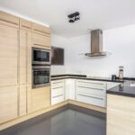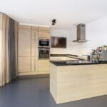 De royale woonkamer is een heerlijke ruimte om in te vertoeven; een prachtige afwerking en zeer rijke lichtinval, door de grote raampartijen rondom. De keuken is ingericht met een modern keukenmeubel in een U-opstelling, een inductiekookplaat, afzuigkap, combi-oven, magnetron, een koel-/vriescombinatie en een vaatwasser. Het meubel wordt afgetopt met een donker composiet werkblad, wat zorgt voor een mooi contrast.