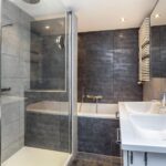De slaapkamers zijn ruim, eveneens modern afgewerkt en voorzien van veel lichtinval. De moderne badkamer is geheel betegeld en uitgerust met een ligbad, een inloop regendouche, een groot wastafelmeubel met dubbele wasbak/kraan, een spiegelkast en een designradiator.