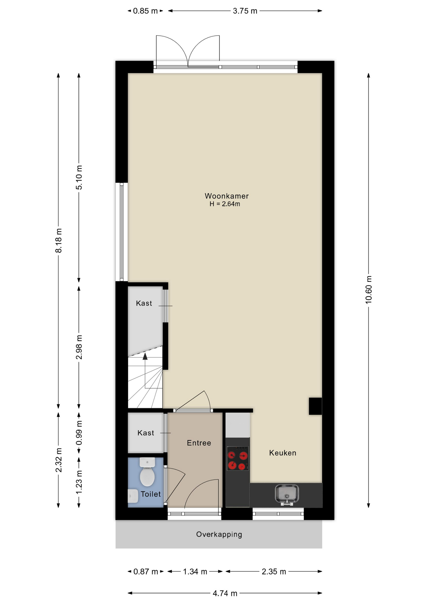 De uitgebouwde woonkamer vormt het hart van de woning en profiteert van veel daglicht dankzij de raampartijen aan de achterzijde en het extra zijraam. De openslaande deuren naar de achtertuin zorgen voor een directe verbinding met buiten. De keuken grenst aan de woonkamer en draagt bij aan een praktische indeling. De tuin op het zuiden en de carport op eigen terrein maken het geheel compleet.