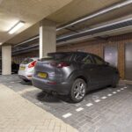 De gezamenlijke entree met trappenhuis en liftinstallatie, biedt toegang tot de bovengelegen appartementen en de parkeerkelder met eigen parkeerplaats en berging in de onderbouw.