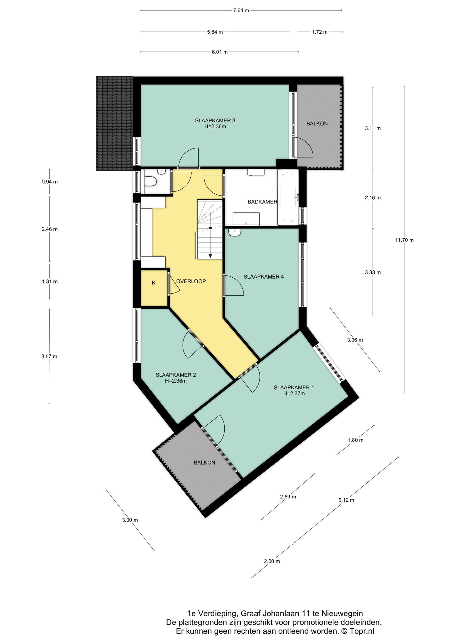 De overloop biedt toegang tot een viertal goed bemeten slaapkamers van ca. 17,5 m2, 16 m2, 11 m2 en 8 m2, alsmede de moderne badkamer met ligbad en wastafel. De twee grootste slaapkamers beschikken daarnaast over een eigen balkon (gesitueerd op het zuiden en noordwesten).