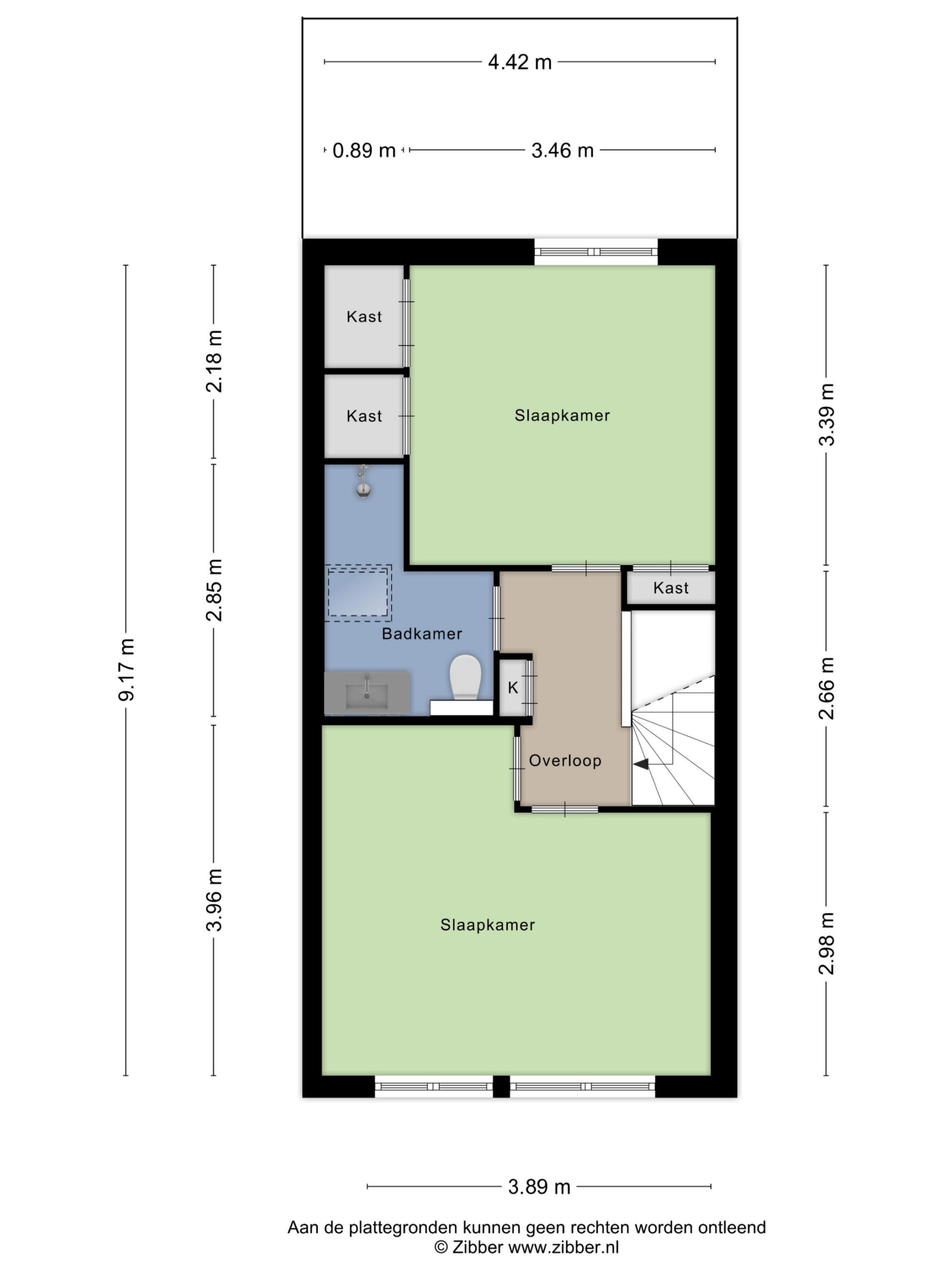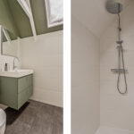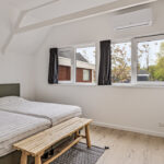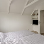 Op de eerste verdieping bevinden zich twee ruime slaapkamers van ca 15 m2 en 11,7 m2, waarbij er de mogelijkheid bestaat om de oorspronkelijke derde slaapkamer te herstellen. De badkamer is modern en uitgerust met een inloopdouche, wastafel, toilet en beschikt over vloerverwarming.