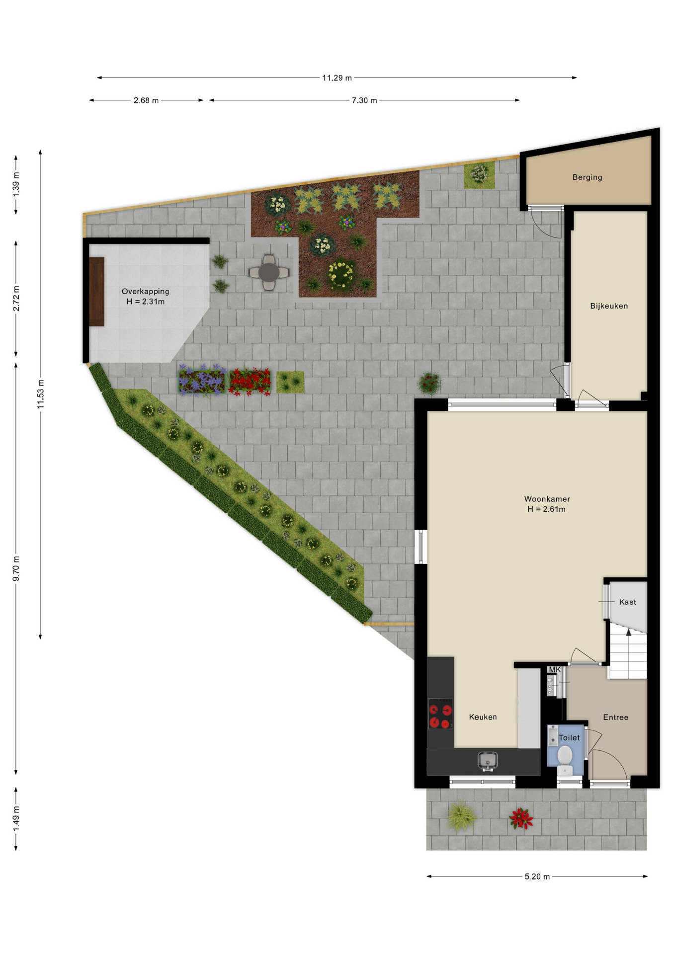 - Zonnige, groene en onderhoudsvriendelijke tuin.